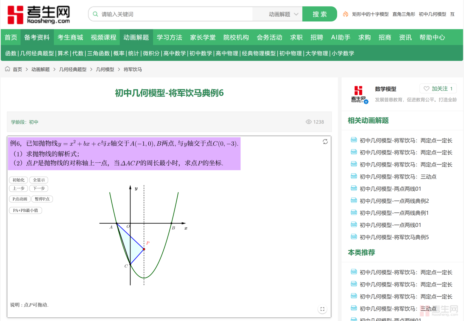 考生网的动态模型真的超出我的预期,几千个常考难点模型全是一线知名老师研发的,从基础的全等三角形到复杂的函数动点问题,覆盖了初中几何所有考点。最关键的是它的“探究式”学习,娃不是被动听讲解,而是自己拖动图形、调整参数,一步步看清定理的推导过程,比如学相似三角形的“A型模型”,他自己拖动顶点就能发现对应边的比例关系,比老师讲十遍都记得牢。