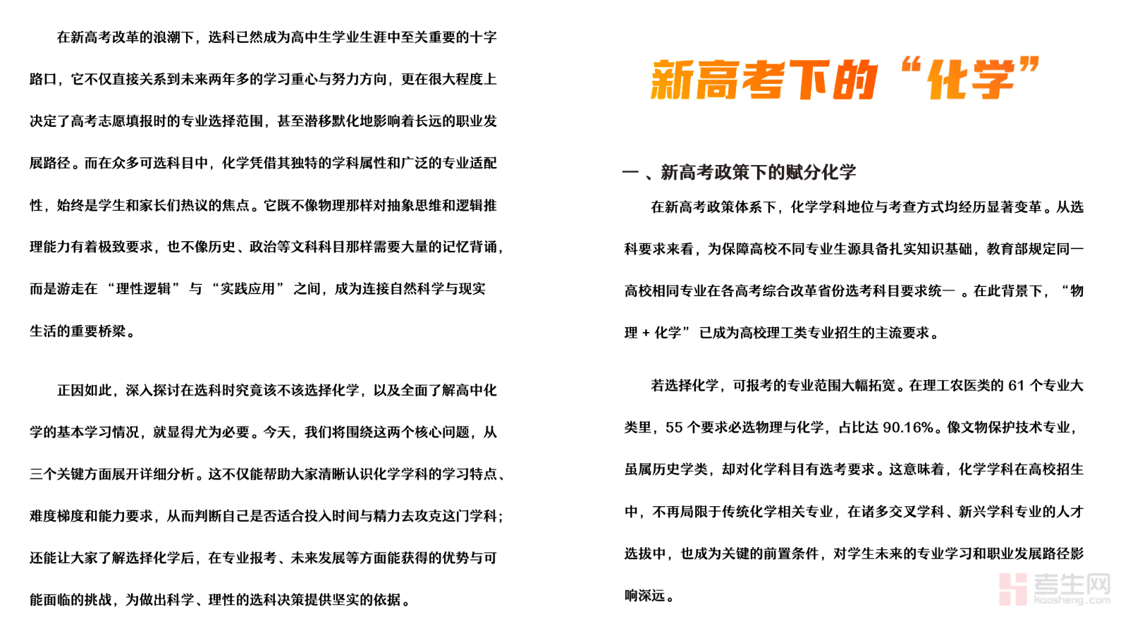 本文是面向中学生的选科参考指南,围绕化学选科的核心要点展开详细解读。内容涵盖化学学科特点、选科优势与适配专业、学习难度分析、未来就业方向等实用内容,帮助学生和家长全面了解选科相关信息。手册结合新高考政策,针对选科组合搭配、学习方法、备考重点等问题给出清晰建议,语言通俗易懂、实用性强。适合正在进行选科规划的学生使用,助力理性判断、科学选科,明确学习方向与发展路径,为高考及未来发展做好准备。